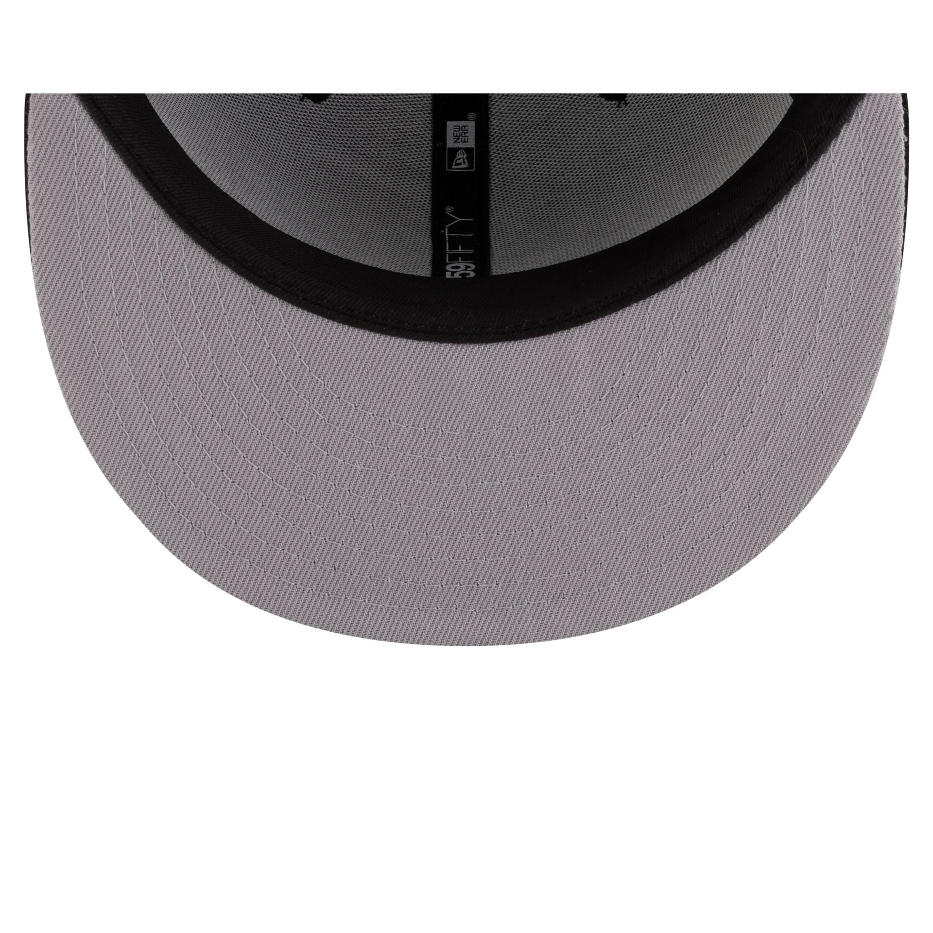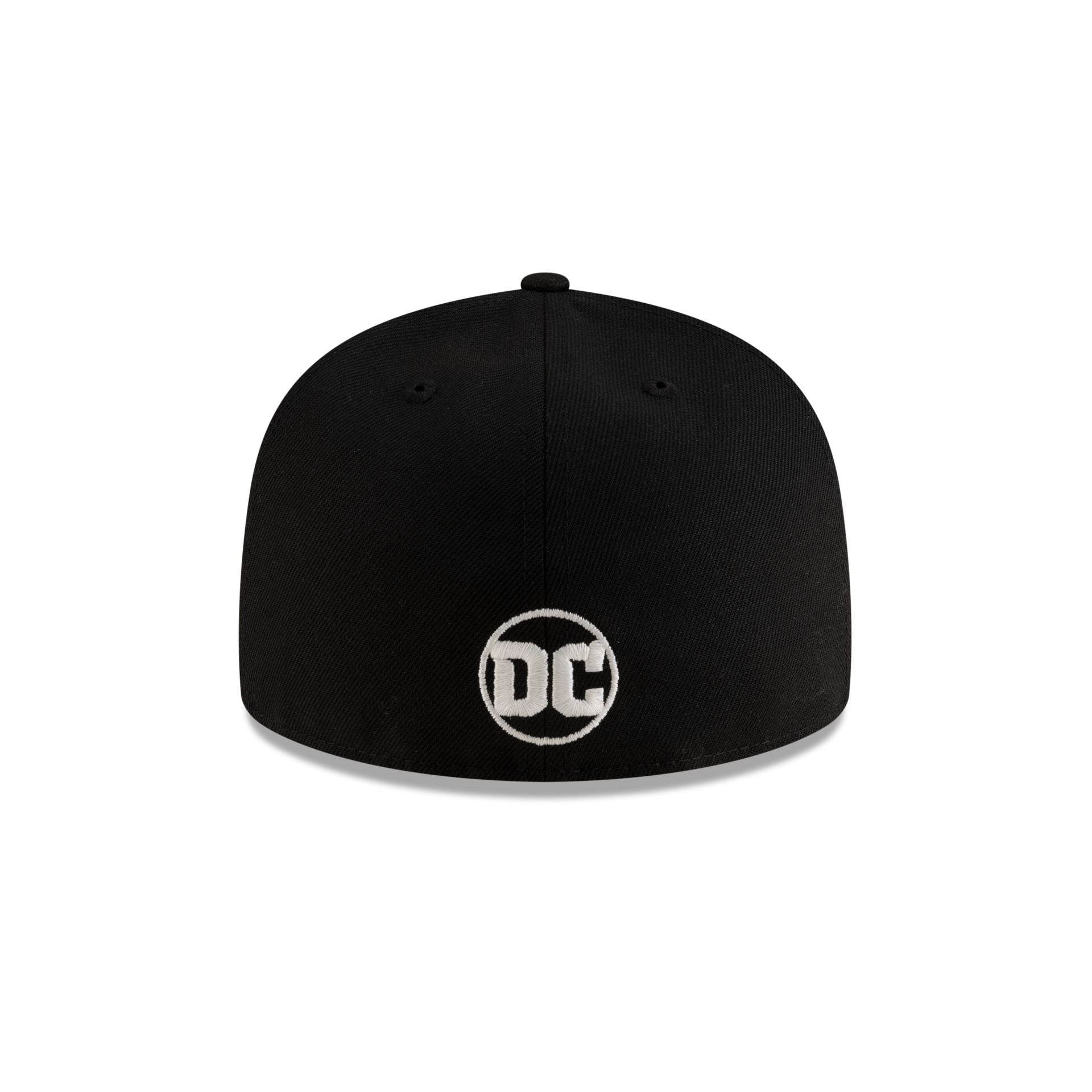 The Batman Black Glow 59FIFTY Fitted Cap features an embroidered Batman graphic at the front panels with a matching DC logo at the rear and a gray undervisor.