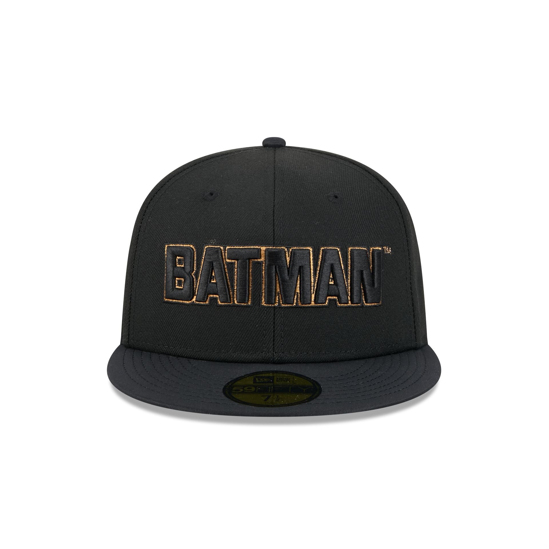 The Batman Bold 59FIFTY Fitted Cap features an embroidered Batman wordmark at the front panels with a matching logo at the rear.