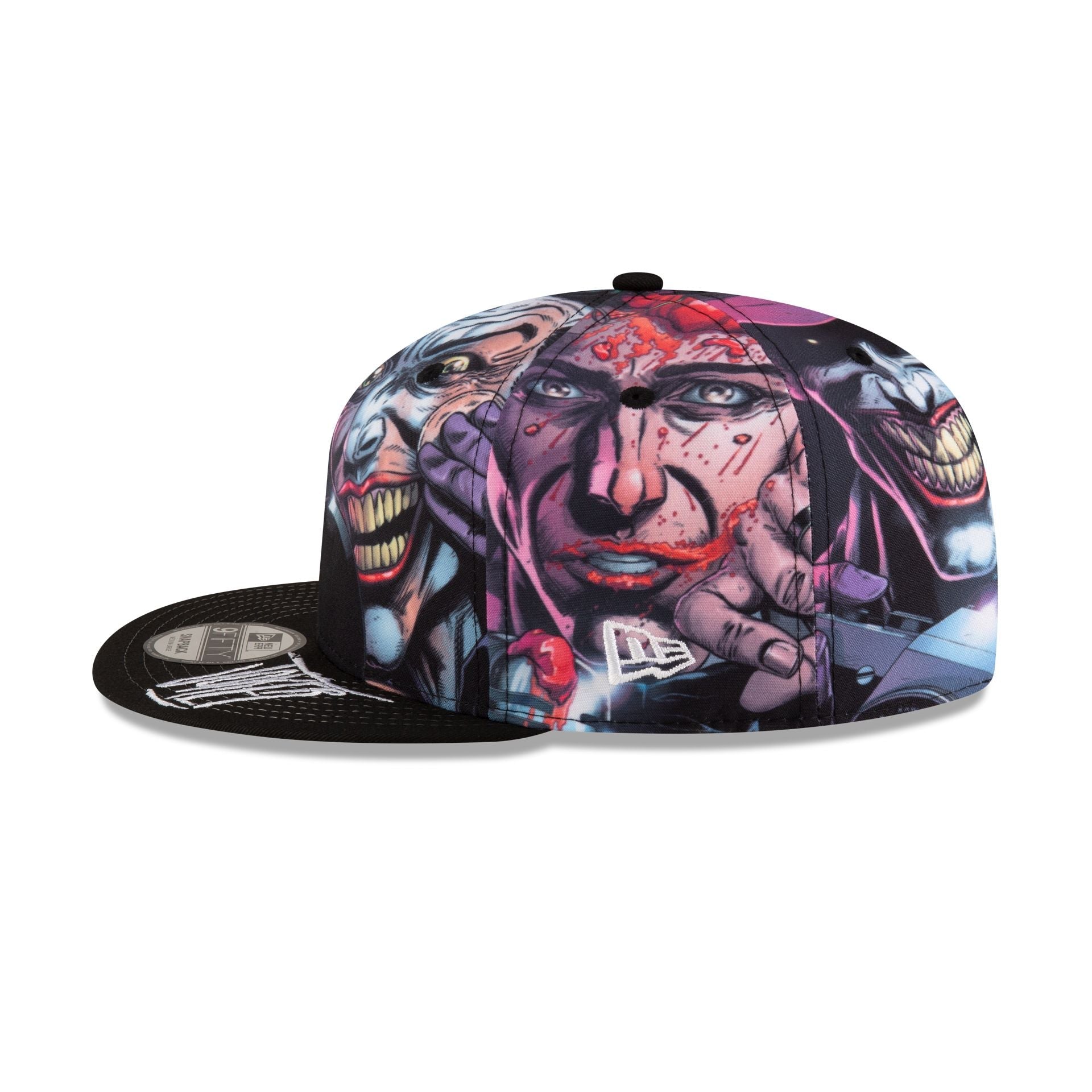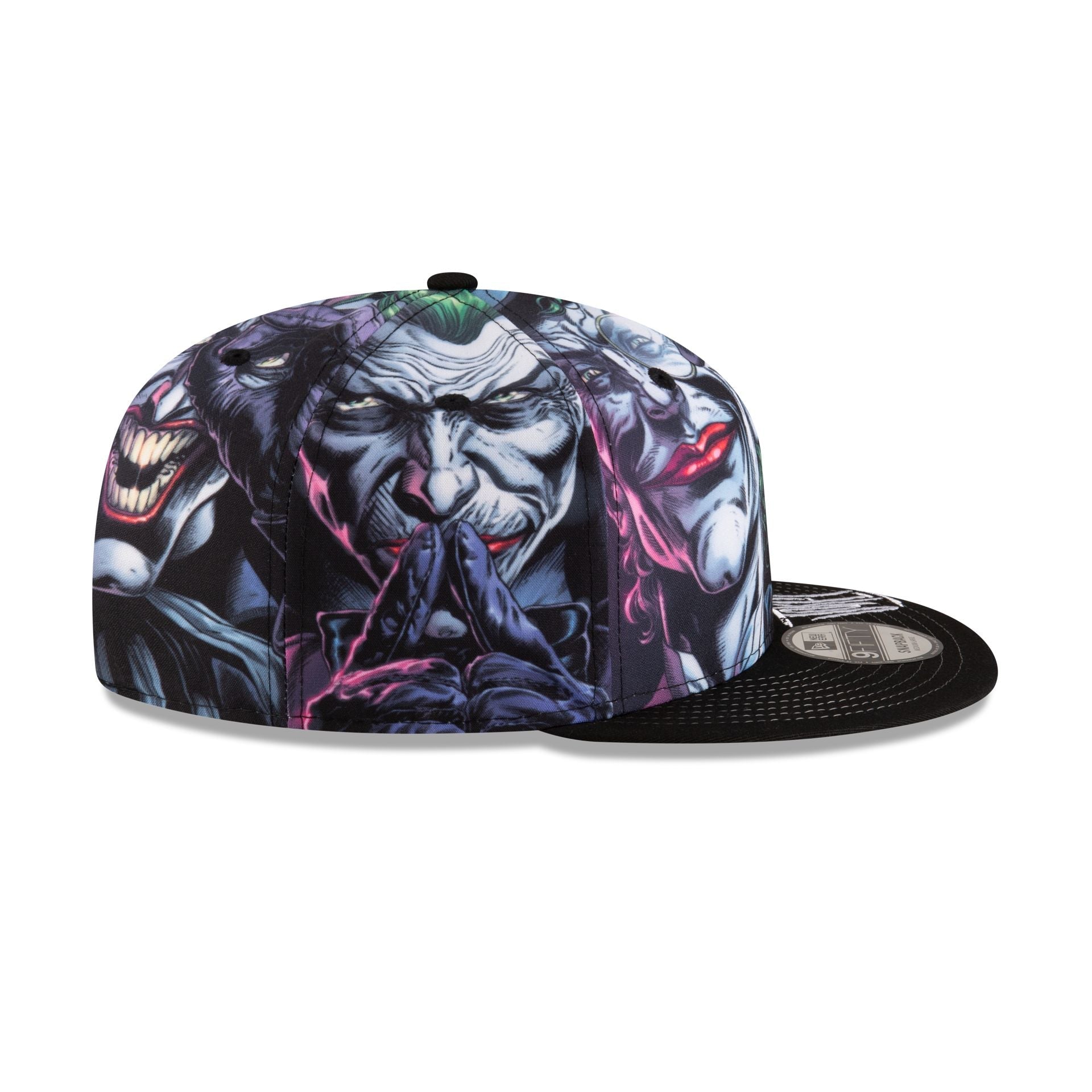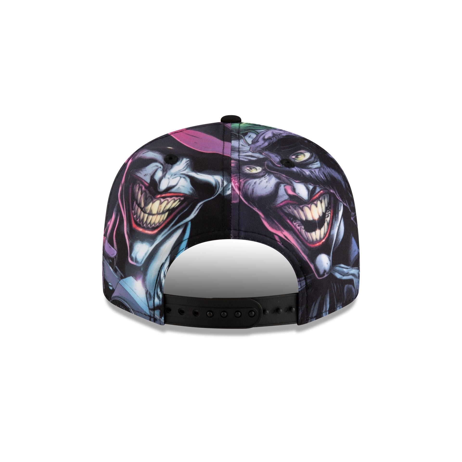The Joker All Over Photo 9FIFTY Snapback features Joker character art around all panels and a Joker wordmark at the visor. Additional details include a snapback closure at the rear and a black undervisor.