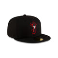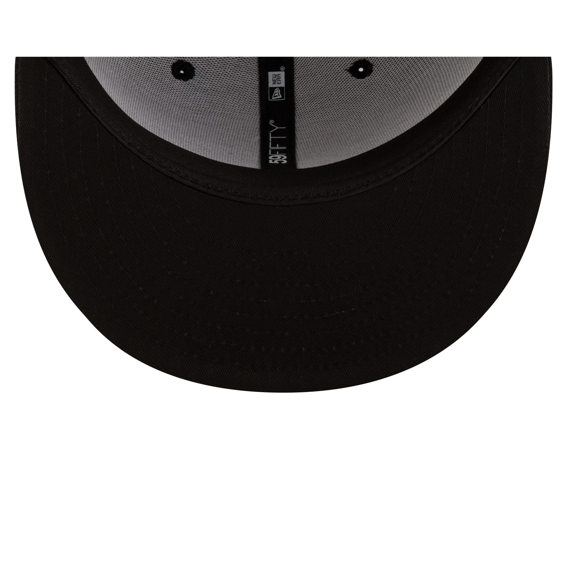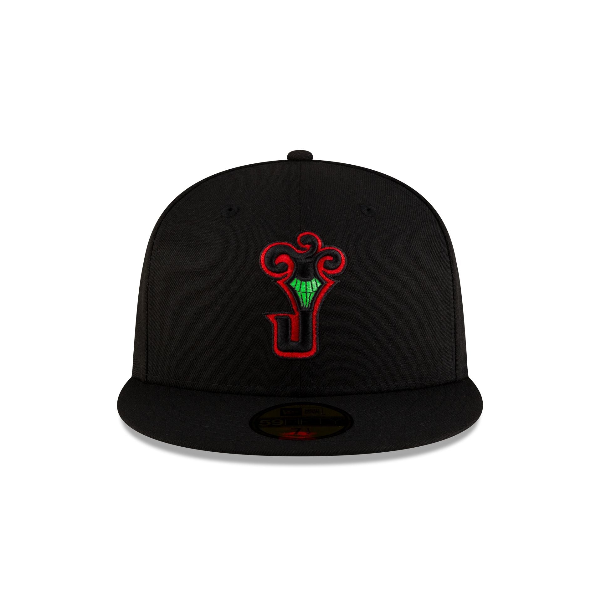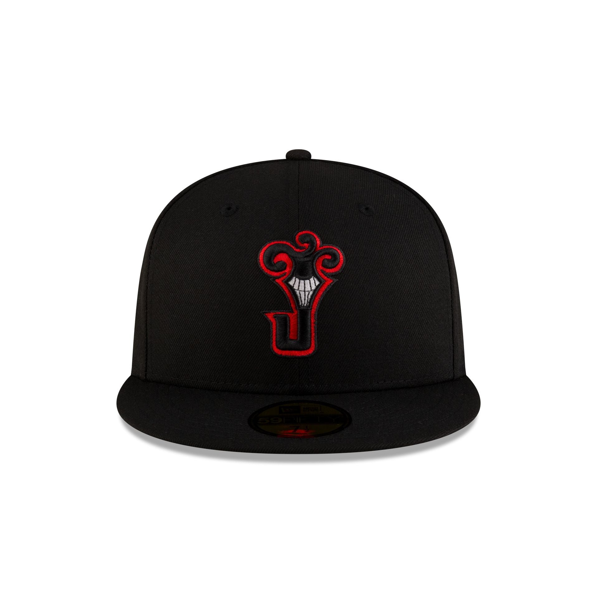 The Joker J 59FIFTY Fitted Cap features an embroidered letter J at the front panels with a matching vertical Joker wordmark at the rear and glow in the dark teeth.